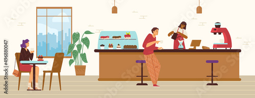 Cosmetics store scene set, flat vector isolated illustration. Happy women shopping for makeup products, perfumes, hair care and body skincare cosmetics. Beauty retail business.