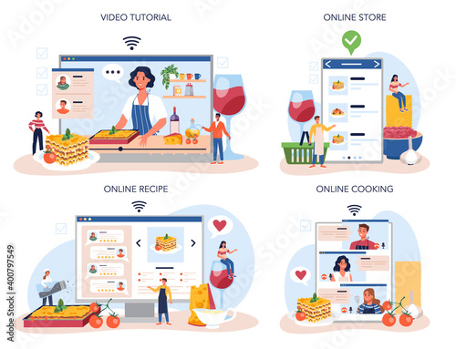 Cotton candy cart in amusement park. Popcorn, ice cream. Food truck business. Mobile app screens. Vector banner template for website and mobile development. Web site and UI design illustration.