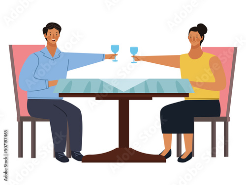 Couple drink coffee in cafe icon vector isolated on white background. Man and woman sitting at table talking enjoy tea time together. Dating or meeting cocnept
