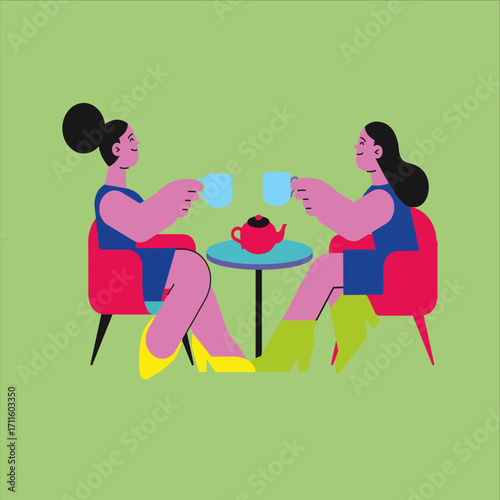 Couple having romantic dinner and drinking wine on sunset. Love and date concept illustration. Vector web site design template. Woman watering flowers in the garden outside house.