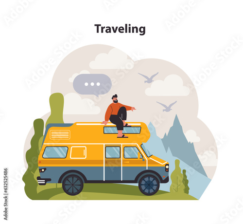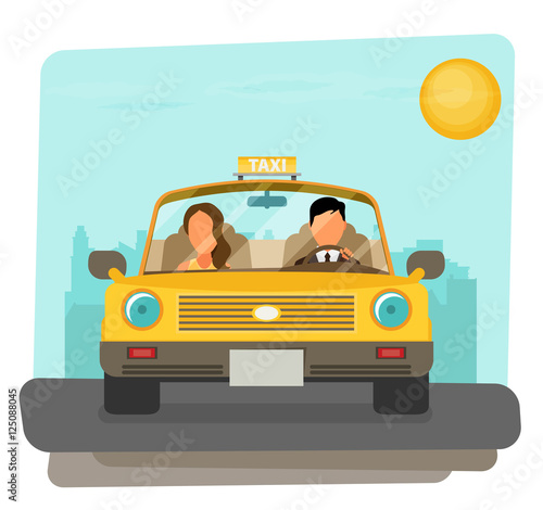 Couple in a car going to road trip. Travel planning vector concept illustration. Woman dreaming about vacation and plan her holiday route. Web site design template for summer travel.