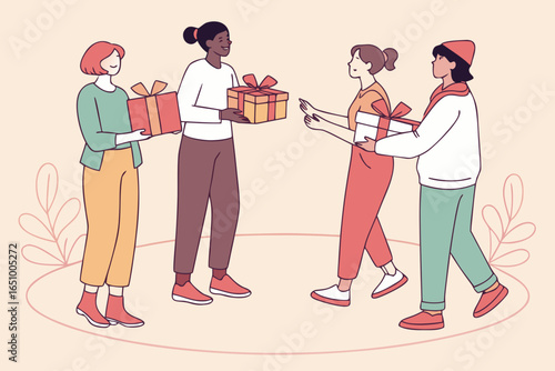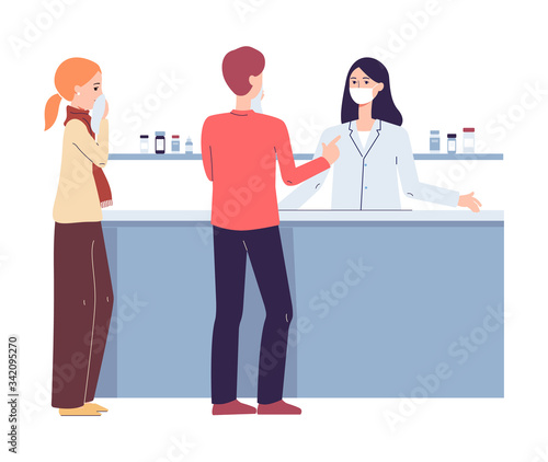 Couple in store choosing shoes vector illustration. Man and woman at retail shop mall buying footwear. Wide range of assortment on shelf. Young married family pair doing shopping together