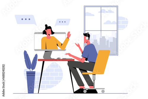 Couple running on treadmills, flat vector illustration. Fitness gym treadmill workout, healthy lifestyle, sport equipment.