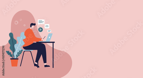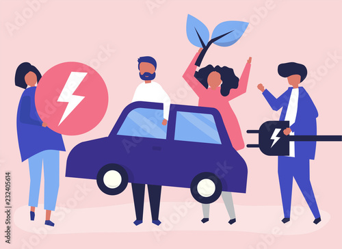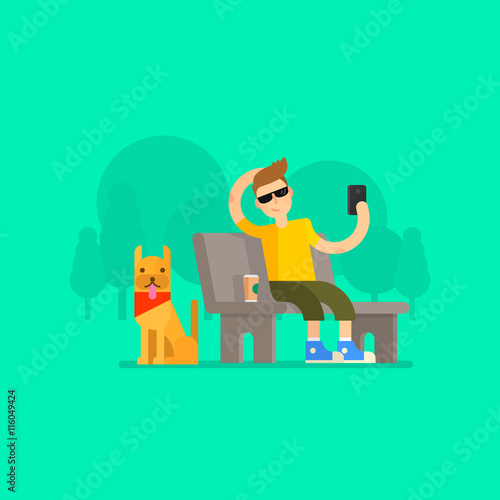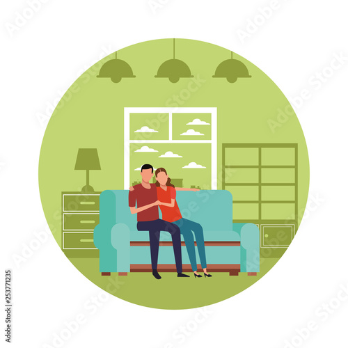 Couple sitting on bench with mountain on background. Love and romantic concept vector illustration. Cartoon characters.