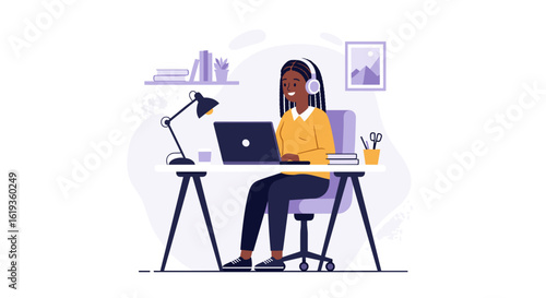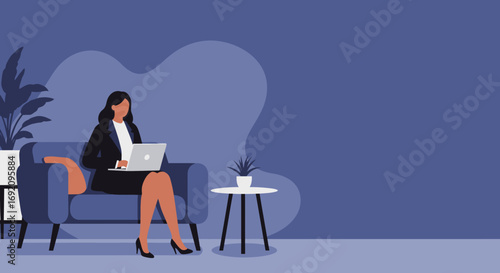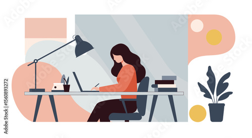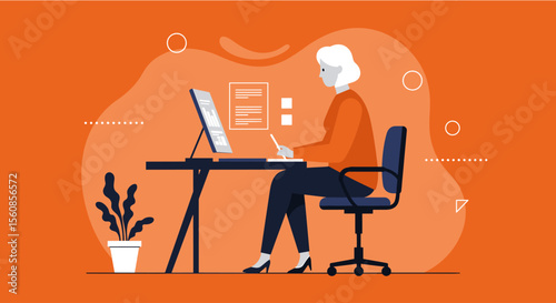 Vector illustration of court worker female making record of legal proceeding or court hearing. Flat style design.