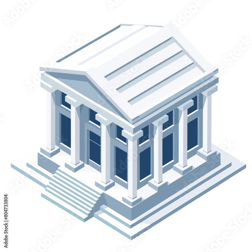 Court supreme government building isometric vector. Courthouse, bank administration, public institute, historic museum or university house exterior icon isolated on white background