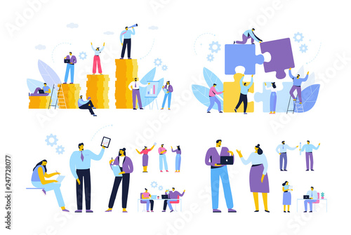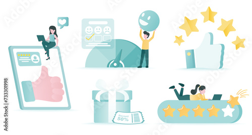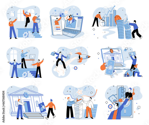 Covid-19 scene set, flat vector isolated illustration. Coronavirus vaccination and its side effects, testing for COVID-19, temperature scanning, digital travel vaccine passport or certificate.