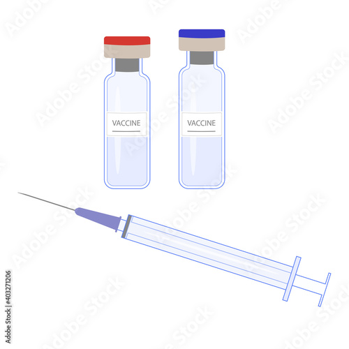 Covid-19 vaccine vial with injection syringe, vector illustration. Coronavirus vaccination campaign, protection against covid disease.