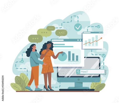 Covid-19 vaccine side effects scene. Vector illustration of vaccinated woman suffering from high temperature after immune injection. Medicine and healthcare concept
