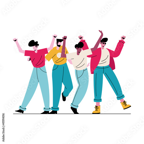 Coworker characters or friends giving high five vector icon isolated on white background.
