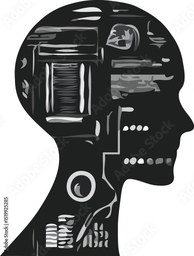 Creative mind poster template, vector illustration in paper art style. Human head silhouette with night starry sky, rocket and planets.