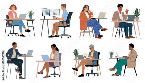 Creative team people vector icon set. Creative director and his team programmer, creator, website developer, graphic designer, system administrator, idea man. Flat style design.
