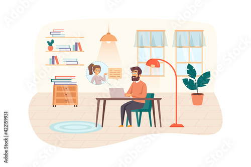 Creativity crisis. Sad, confused, tired woman, writer sitting at desk with clean sheet of paper on it, flat vector illustration. Creative crisis and burnout, depression, mental stress.