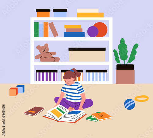 Crossbooking concept vector flat style design illustration. Diversity people reading books while sitting and lying on bookshelves. Library for exchange of books and spend good time.