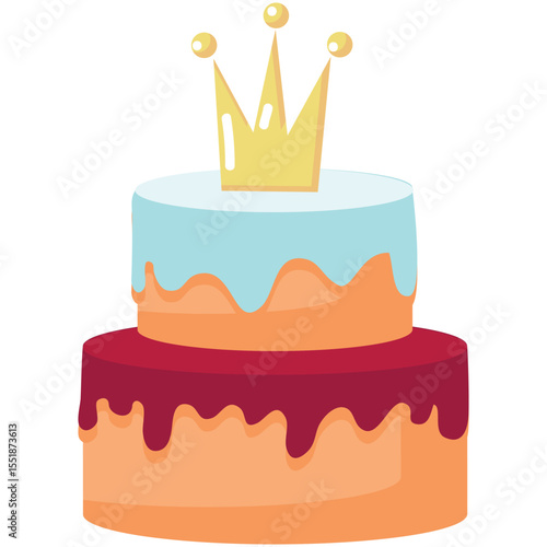 Vector crown cake. Birthday party, anniversary or wedding sweet bakery dessert illustration. Isolated confectionery with princess or king tiara on white background