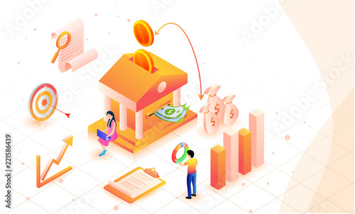 Cryptocurrency stock exchange, flat vector isometric illustration. People exchanging bitcoin, ethereum digital currency to dollar. Cryptocurrency marketplace.