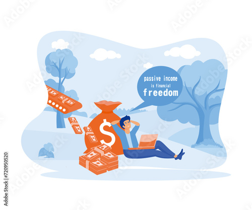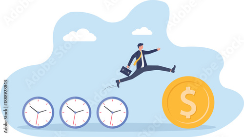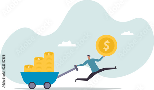 Successful businessman surfing reserve currency wave. Vector illustration in paper art style. Modern origami design template.