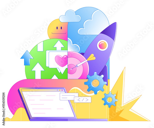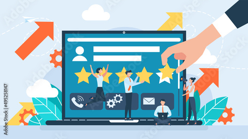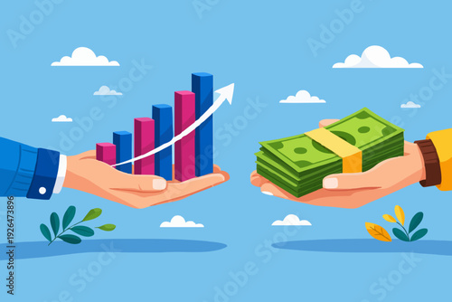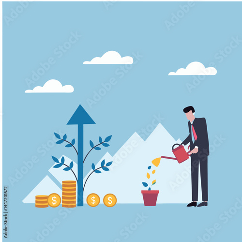 Currency trader looking through telescope while standing on up arrow. Vector paper cut illustration. Stock exchange market, investment and trading concept for web banner, website page etc.