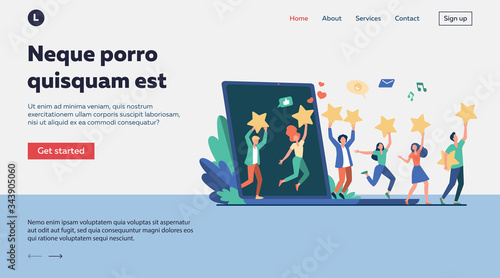 Customer feedback landing page website template. Vector isometric illustration. Customer review concept.