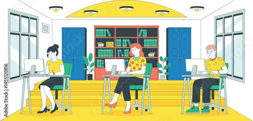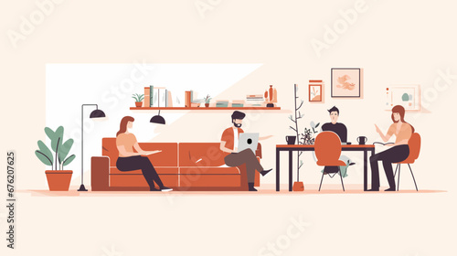 Customer waiting for her car in auto mechanic shop. Car repair service cartoon vector illustration. Mechanic engineer fix broken car and change tires and oil. Vehicle maintenance station.