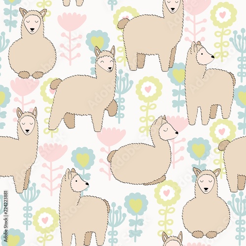 Cute cartoon alpaca icon set. Vector hand drawn illustration of funny pink, yellow, blue llamas and cactuses for greeting card, invitation, baby shower card, poster, patch, sticker and print.