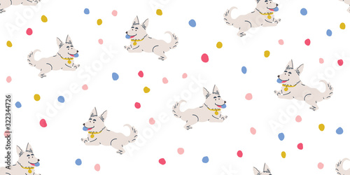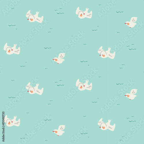 Cute alpacas flying on balloons vector seamless pattern. Creative design for fabric, textile, wallpaper, wrapping paper.