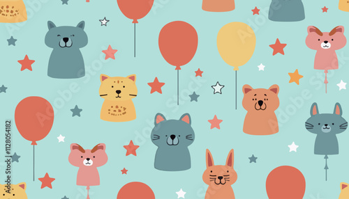 Cute animals in love vector illustration isolated on white background. Happy fox, bear, owl, raccoon, squirrel, deer, hedgehog and hare holding hearts, cake, balloons and flowers.
