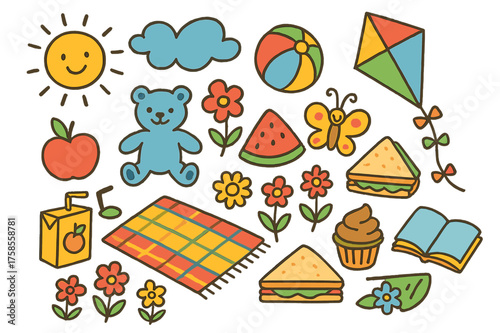 Cute wild animals taking rest on beach icon set. Vector illustration of funny hedgehog fox squirrel owl raccoon rabbit deer and panda enjoying summer beach holidays isolated on white background.