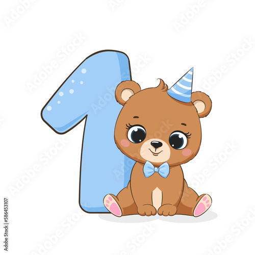 Cute bear vector. Funny forest animal with inflatable swimming ring icon illustration. Happy grizzly summer character isolated on white background