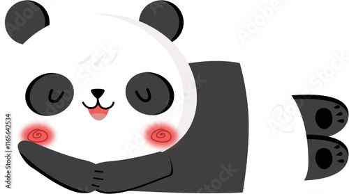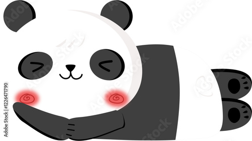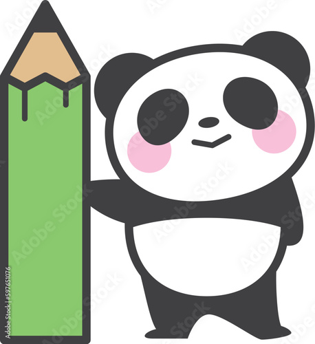 Cute cartoon panda vector. Bear animal icon. Funny baby cub character with happy face eating bamboo isolated on white background