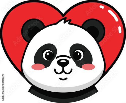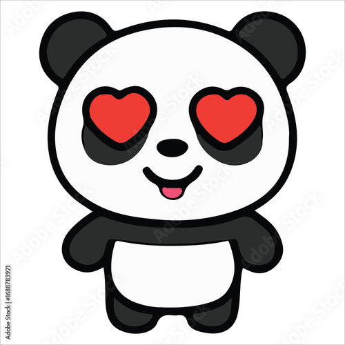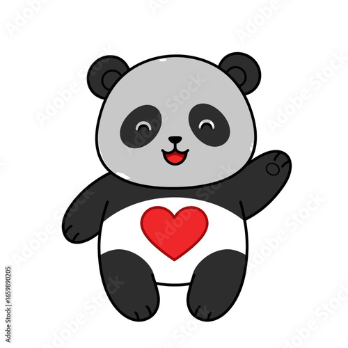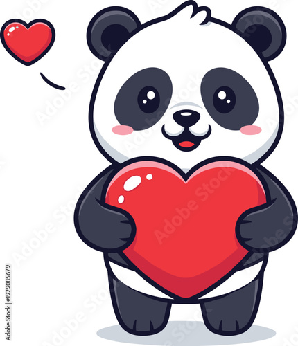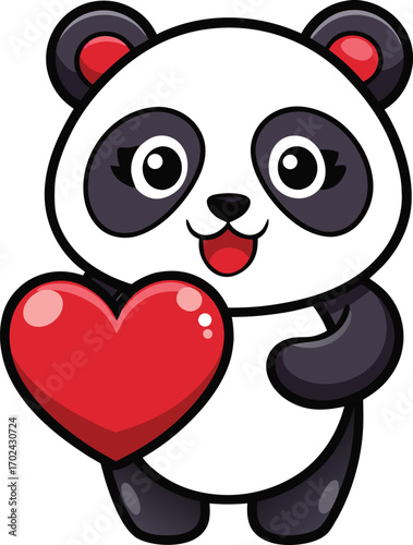 Cute cartoon panda vector. Bear animal icon. Funny baby cub character with happy face fall in love, holding heart symbol isolated on white background