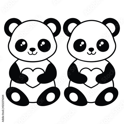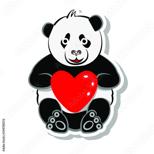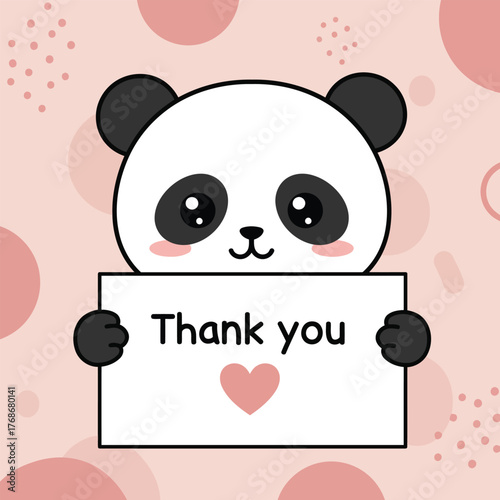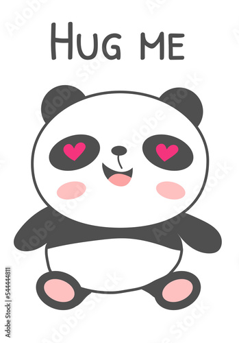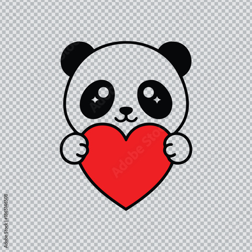 Cute cartoon panda vector. Bear animal icon. Funny baby cub character with happy face holding love you recognition placard isolated on white background