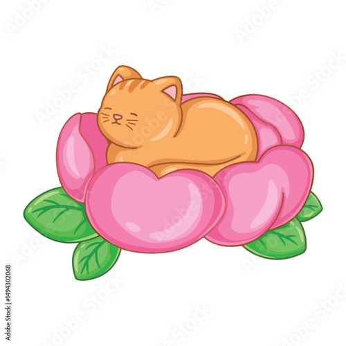Cute cat vector. Cartoon animal. Kitten character illustration. Funny pet curled up sleeping having sweet dream icon isolated on white background