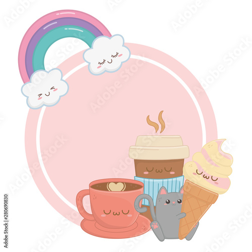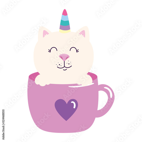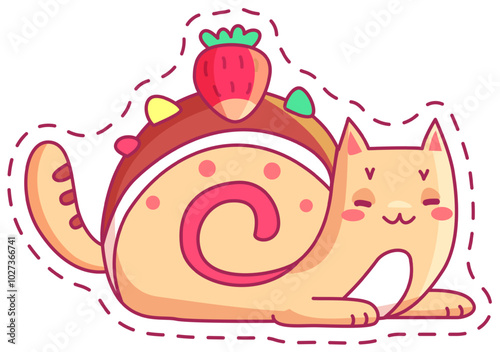 Cute cat vector. Cartoon animal. Kitten character illustration. Funny pet eating dry food from bowl having lunch icon isolated on white background