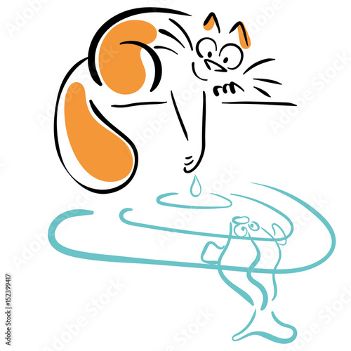Cute cat vector. Cartoon animal. Lazy kitten character illustration. Funny pet licking washing paw icon isolated on white background