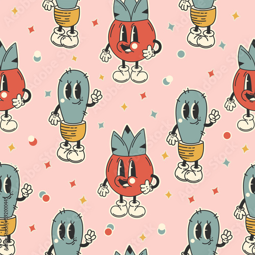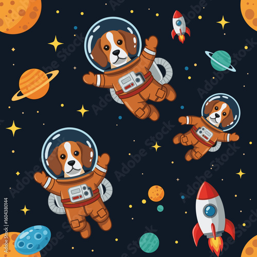 Cute cats in outer space vector seamless pattern. Creative design for fabric, textile, wallpaper, wrapping paper.