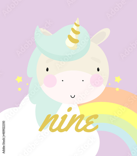 Cute unicorn vector. Baby horse cartoon icon. Charming pony animal sleeping having sweet dream isolated character on white background