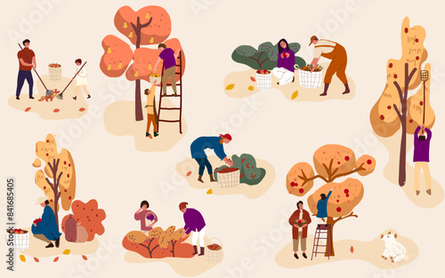 Cute cow cartoon character set, flat vector isolated illustration. Funny farm animals sleeping, drinking milk, holding bottle, bucket, milk carton box. Dairy industry, agriculture.