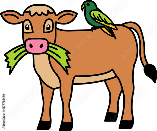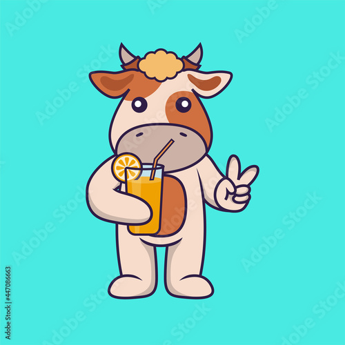 Cute cow animal character holding glass bottle with farm milk flat cartoon vector illustration. Funny mascot advertising fresh natural dairy product