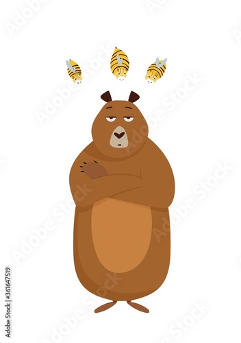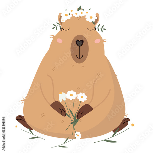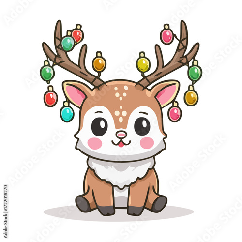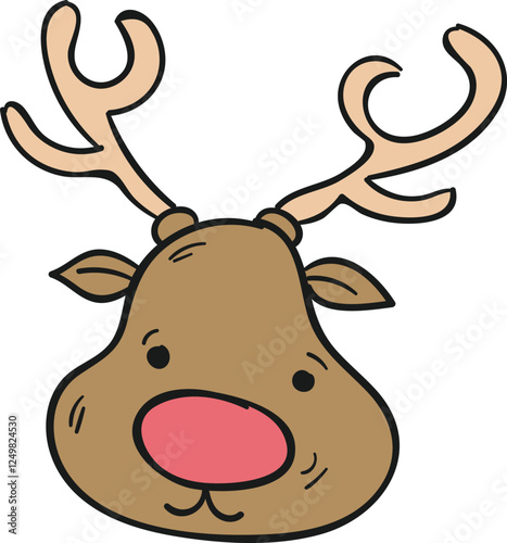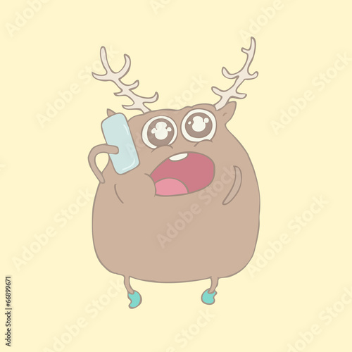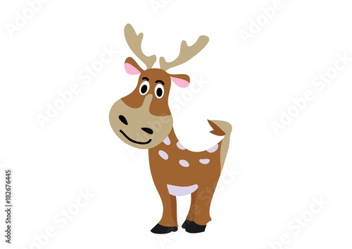 Easter vector. Cute cartoon deer character carrying gift eggs. Spring holiday horned animal for greeting doodle card decoration isolated on white background