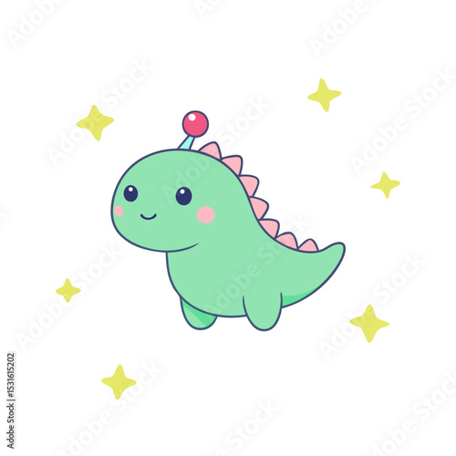 Dragon cartoon vector. Cute baby character illustration smelling flower icon. Fairy tale fantasy dinosaur, funny little monster isolated on white background