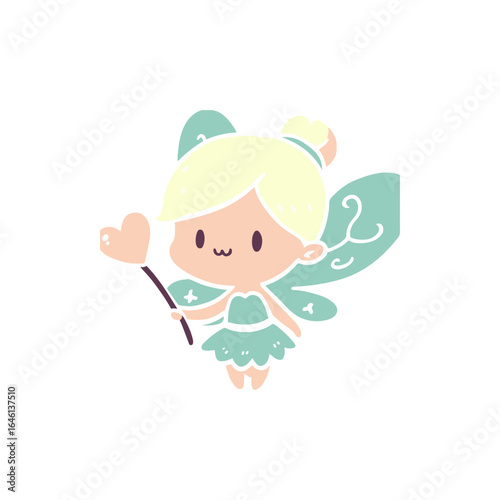 Cute fairy flying vector illustration. Cartoon magic girl character with wings. Fairytale princess in costume. Fantasy little forest pixie angel isolated on white background