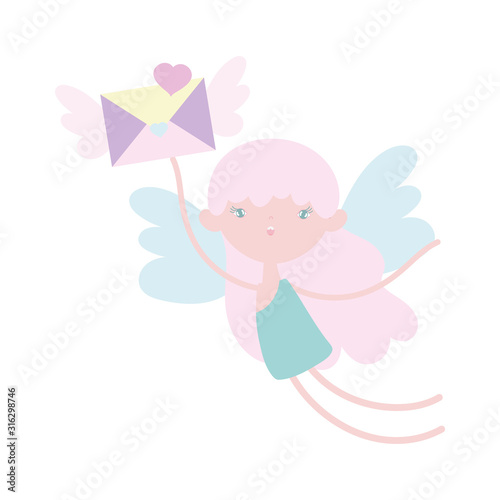 Cute fairy vector illustration. Cartoon magic girl character with butterfly. Fairytale princess in costume with wings. Fantasy little forest pixie angel isolated on white background