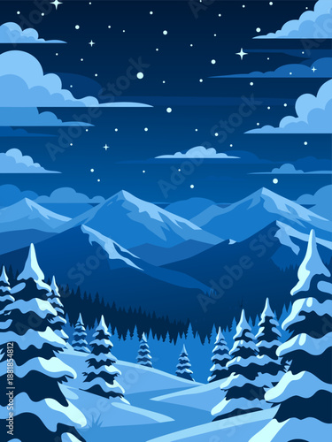 Vector layered paper cut craft style fairytale composition of cute magical fairy silhouette sitting on tree branch, night starry sky.