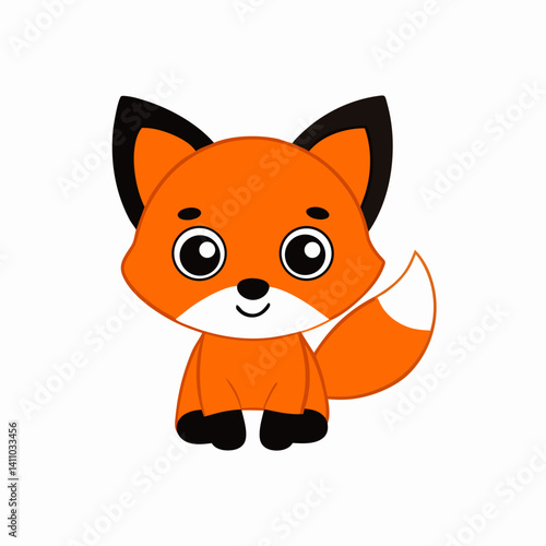 Cute fox cartoon animal on snowboard vector. Funny snowboarder icon isolated on white background. Active winter fun, extreme sport, extreme riding