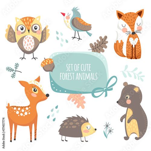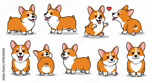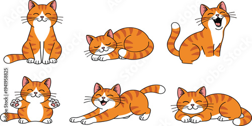 Cute fox icon set for greeting card, invitation, poster, sticker, print. Vector isolated illustration of funny foxes sitting sleeping, jumping, flying, dreaming, being in love, listening to music.