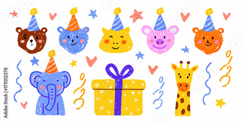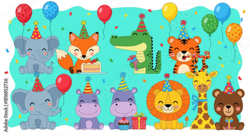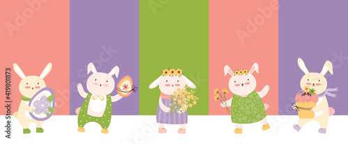 Cute cats with spring flowers and birds. Vector illustration isolated on white background. Happy funny kittens for greeting card, invitation, sticker, poster, print.