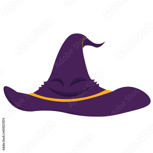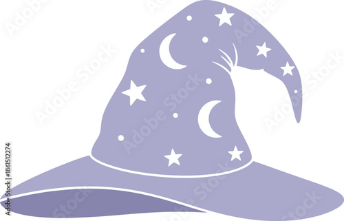 Cute funny wizard hat vector. Halloween starry purple merlin magician cap costume photobooth accessory icon isolated on white background