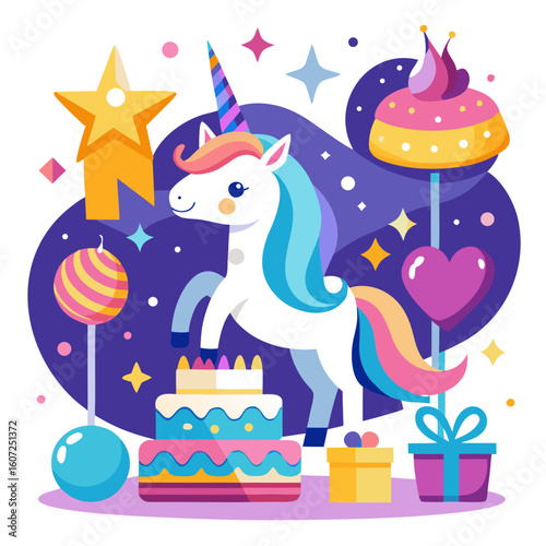 Cute lama alpaca animal birthday celebration flat vector icon. Funny llama character sitting near gift boxes and smiling cartoon illustration isolated on white background