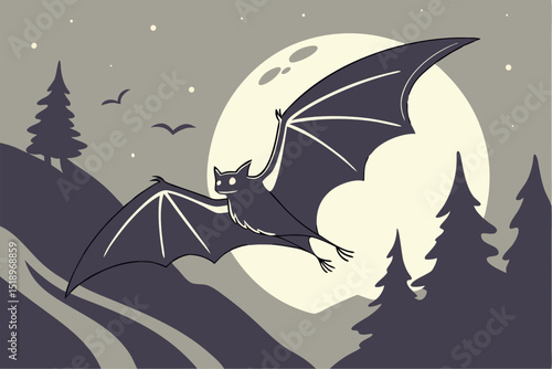 Cute fairy magical and fictional character silhouette sitting on tree branch, vector illustration. Fairytale composition in paper art modern craft style.